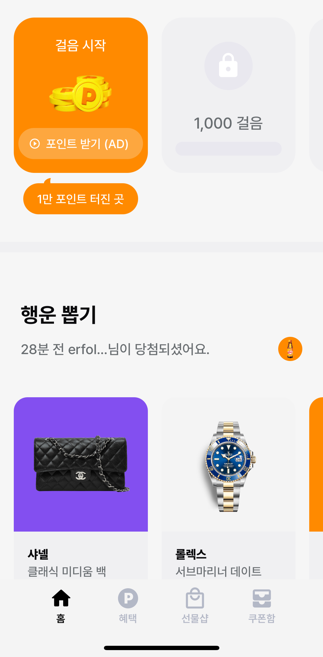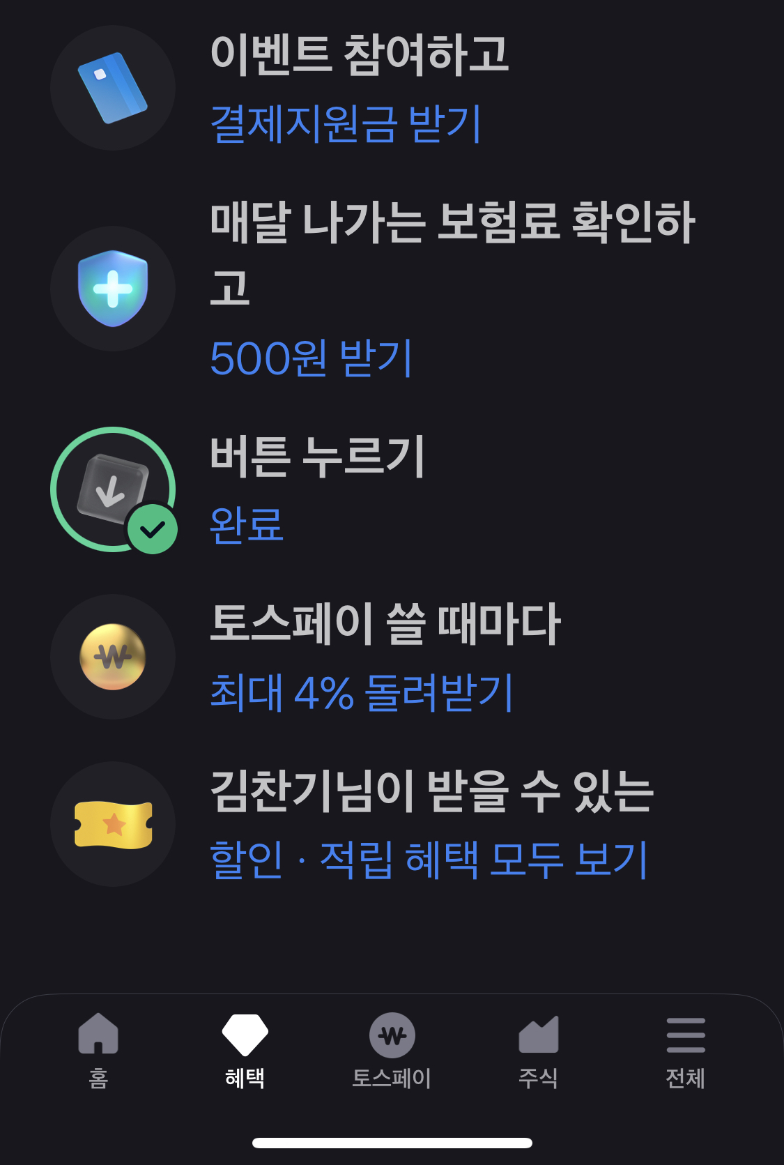 제가 가장 재밌게 하는 기능은 앱 내 혜택 메뉴에