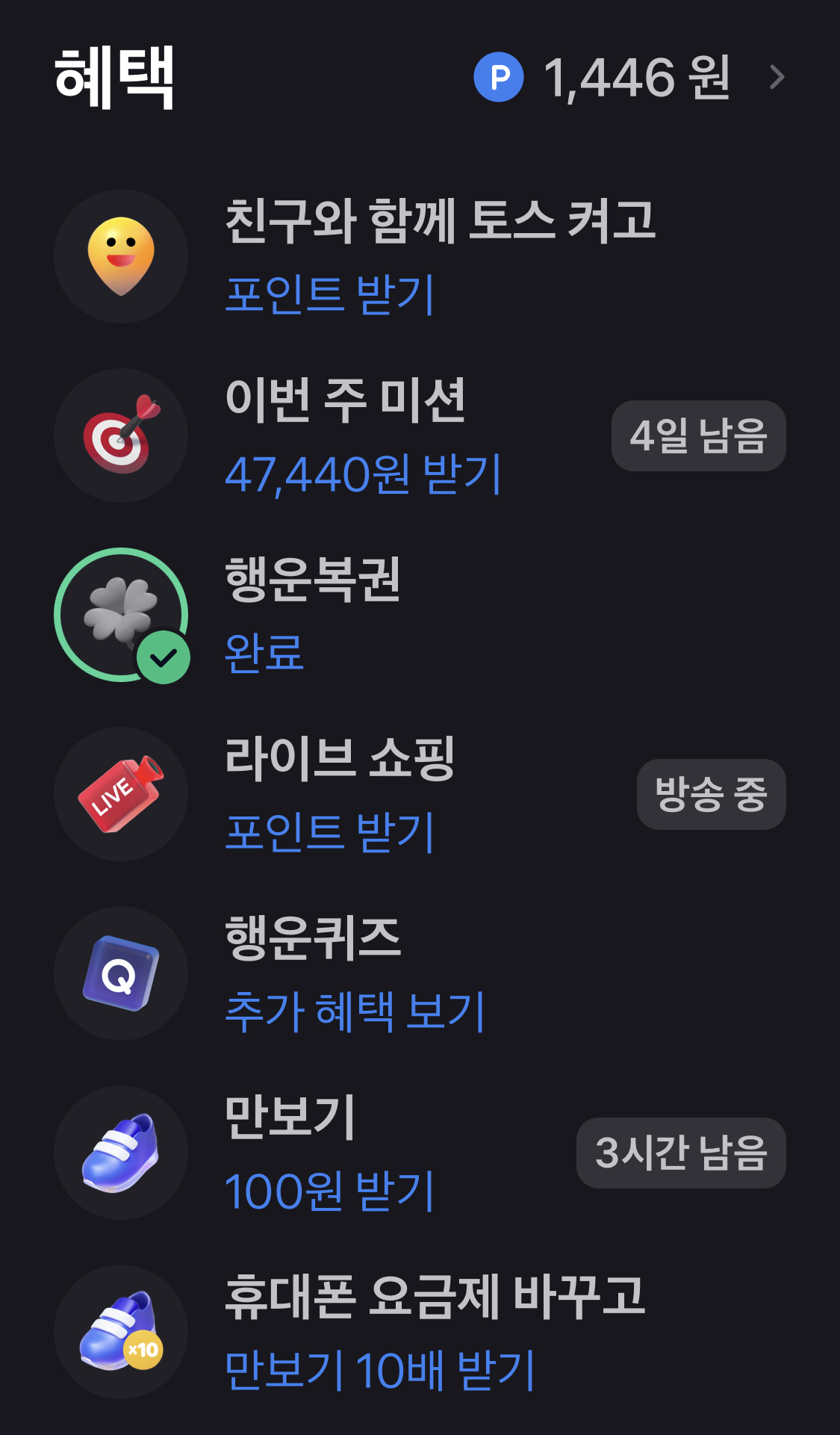 아래 이미지처럼, 혜택 메뉴에서 돈을 받을 수 있는 기능이 3개나 있어요!