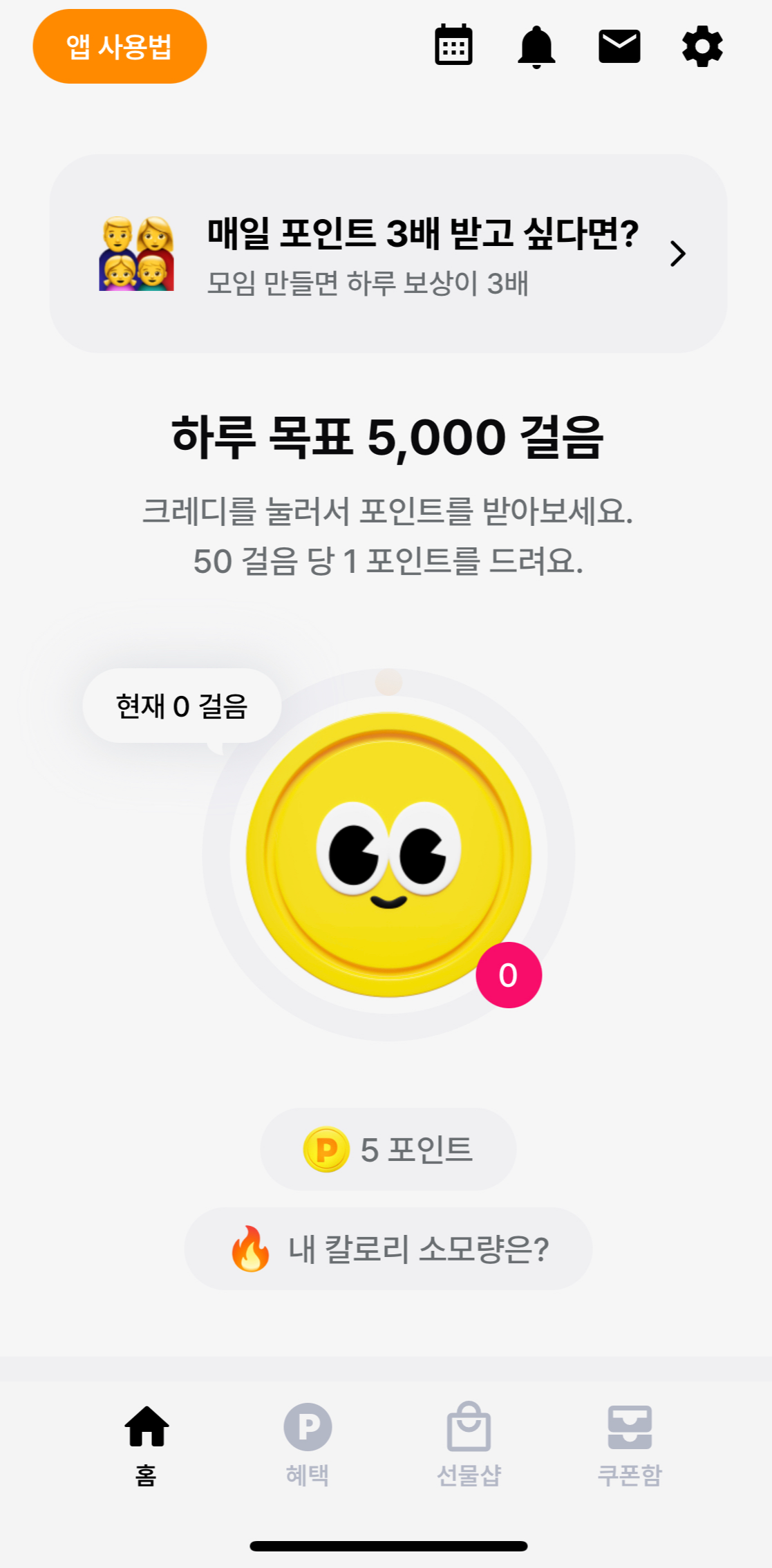 50걸음당 1포인트를 주는데 이벤트가 있어서 추가 포인트도 수령이 가능했어요!