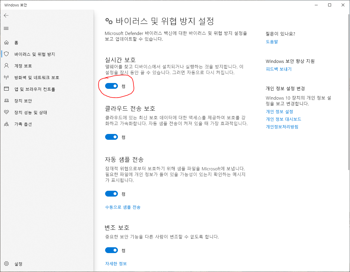 실시간 보호 잠깐 끄기
